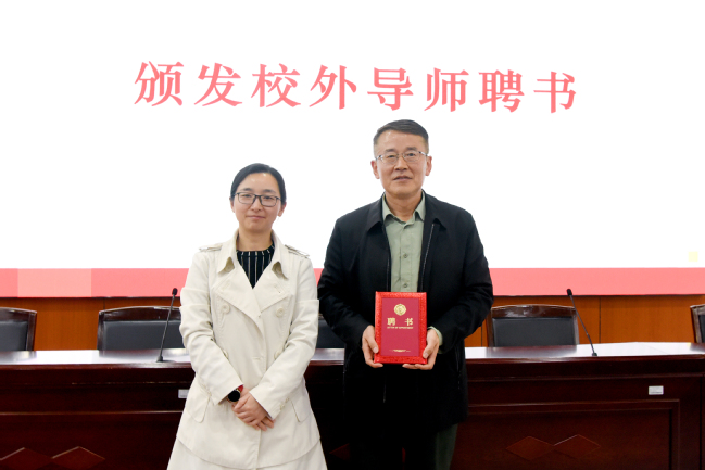 为深化校地合作、传承实践经验,现场举行了校外导师聘任仪式。周婷为吴建斌颁发“校外导师”聘书,希望为学院人才培养提供更丰富的资源和实践指导。