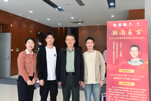 为深入贯彻“三全育人”理念,推动国防教育与思政课程深度融合,引导青年学子在历史传承中厚植家国情怀,4月8日下午,由tyc8722太阳集团、浦东新区军队离休退休干部服务管理中心及福寿园海港陵园联合主办,校雷霆星火辅导员工作室承办的《潮涌东方:从千年古海塘到世界会客厅的恒心密码》主题讲座在临港校区学术楼103报告厅隆重举行。浦东新区军队离休退休干部服务管理中心社区政委、党支部书记吴建斌、能机学院党委副书记周婷及福寿园海港陵园总经理刘保林参会,会议由校雷霆星火辅导员工作室负责人仝晶晶主持。