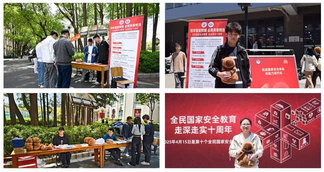 4月15日国家安全教育日当天,能机学院联合学志红色宣讲团、校雷霆星火辅导员工作室与电气学院形成两校区联动,分别在临港校区一食堂广场和杨浦校区三好堂外,举办了一场别开生面的国家安全教育日主题摆摊活动,吸引了众多在校大学生踊跃参与。活动内容涵盖宣传展板学习、知识答题、趣味套圈、互动抽奖以及投壶等多个环节。