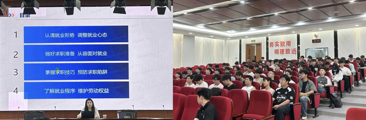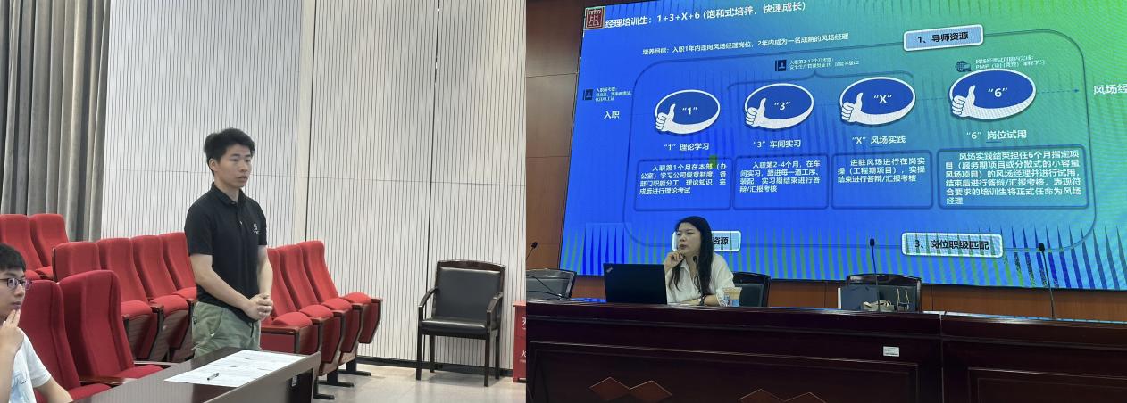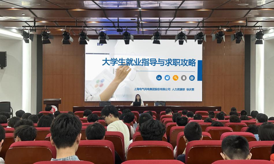 为深入贯彻落实国家关于促进高校毕业生就业工作的决策部署,帮助2026届准毕业生把握就业形势、提升求职竞争力,2025年5月15日,tyc8722太阳集团特邀上海电气风电集团股份有限公司人力资源部招聘负责人徐庆雯来校开展“大学生就业指导与求职攻略”专题讲座。讲座聚焦就业政策解读、求职技能提升与权益保障,吸引学院百余名学生参与,讲座由就业工作联系人高汕主持。