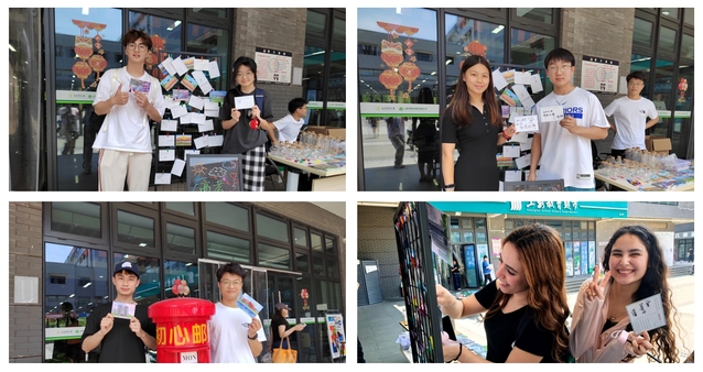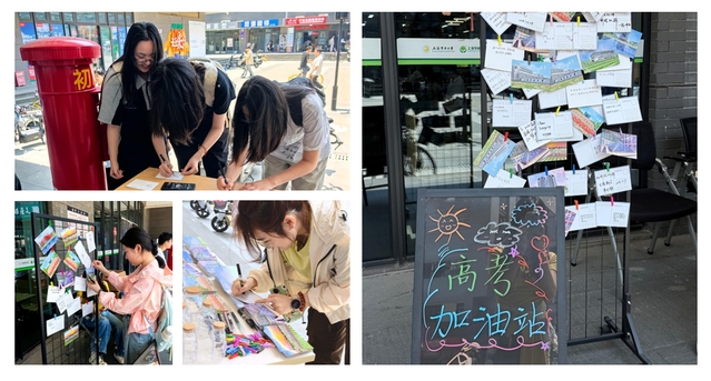 活动现场气氛热烈,精心布置的摊位犹如一座温情驿站,印有上电地标的明信片整齐排列,吸引同学纷纷驻足。来往同学积极参与,在明信片上写下对高考学子的诚挚鼓励与温暖期盼。一笔一划间,承载着学长学姐们最真挚的心意;一字一句里,凝聚着全体上电能机师生对考生的美好祝愿。