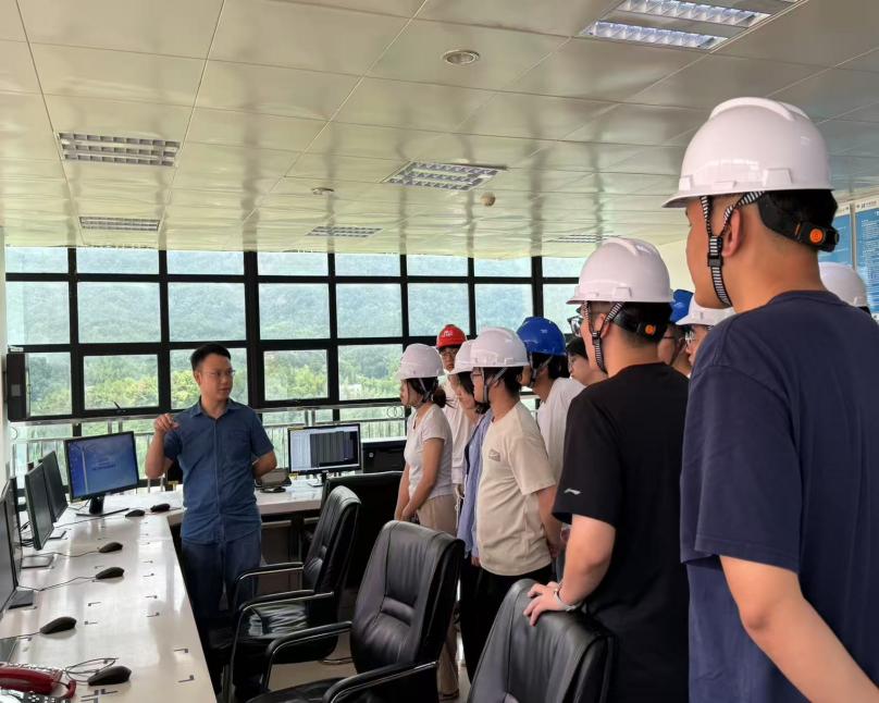 以参观学习强化理论知识储备。在华能湖南分公司的统筹安排下,实习团队先后深入集中式光伏电站、梅桥风电场及清洁能源公司进行实地参观。同学们亲眼见证了华能湖南以“新能源为主体、火电为支撑”的新型电力系统建设进程,切身感受能源行业践行“双碳”目标的生动实践。在广袤的光伏矩阵中,湛蓝的光伏板如波浪般延展,高效转化着阳光能量;梅桥风电场的巨型风机巍然矗立于群山之巅,叶片划破长空,将风能转化为清洁电力;而长沙新能源集控中心的大屏上,实时跳动的数据精准调控着全省风电场的运行。一幕幕场景生动展现了华能湖南在清洁能源开发、智慧运维等领域的创新成果。通过实地探访,同学们深刻体会到能源人推进能源结构转型、服务国家战略的责任与担当,也更加坚定了投身能源行业、助力“双碳”目标的职业理想。