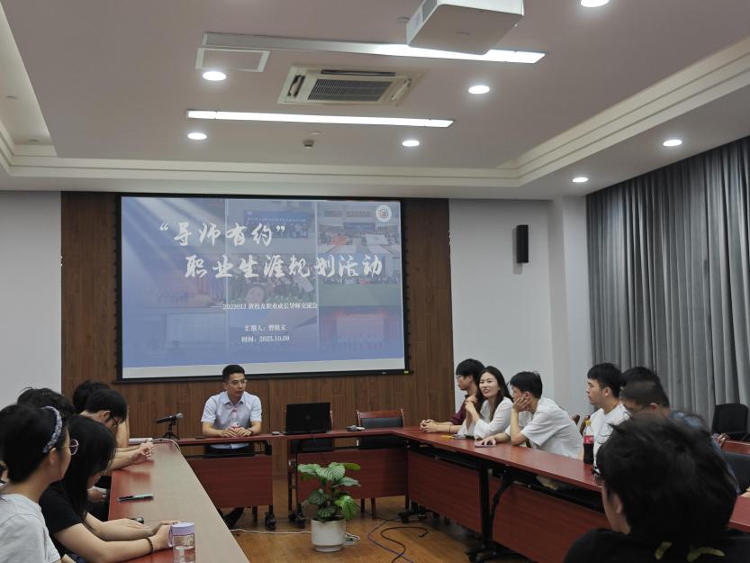 为发挥校友资源优势,精准对接大三关键节点需求,帮助学生厘清考研与就业抉择路径,系统提升软技助力,能机学院开展“导师有约”暨职业生涯规划“一站式”学生社区系列活动。班级校友职业成长导师、浙江浙能电力股份公司人力资源部副主任鲁传龙返校,与全体同学开展主题交流,活动由辅导员高汕主持。