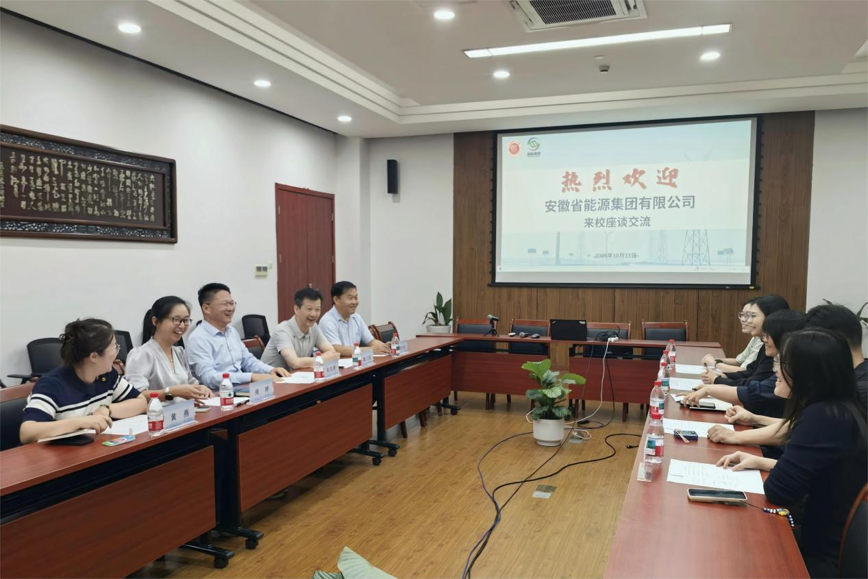10月13日,太阳官网与安徽省能源集团有限公司在临港校区学术楼105会议室举行座谈交流。校党委副书记、副校长朱克勇、tyc8722太阳集团党委书记潘卫国及相关教师代表与安徽省皖能股份有限公司党委组织部主任李颖、安徽省能源集团有限公司党委组织部主管夏黎强等一行出席会议。