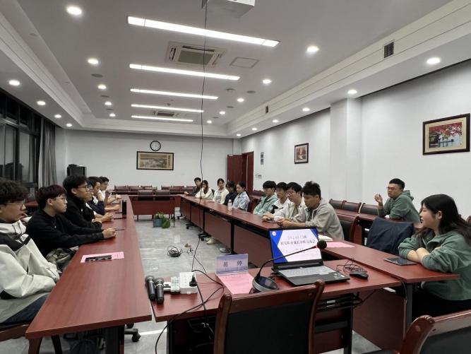 刘力瑞代表学院向葛婷致以热烈的欢迎与诚挚的感谢。他表示,校友导师是同学们成长路上的“灯塔”,勉励在座同学珍惜这次面对面交流的机会,从本次交流分享中汲取成长的力量。随后,班长张津玮简要介绍了班级的整体学业情况,并围绕学业发展、班级建设与荣誉成果等方面,系统汇报了过去一学年班级的成长历程与发展面貌。