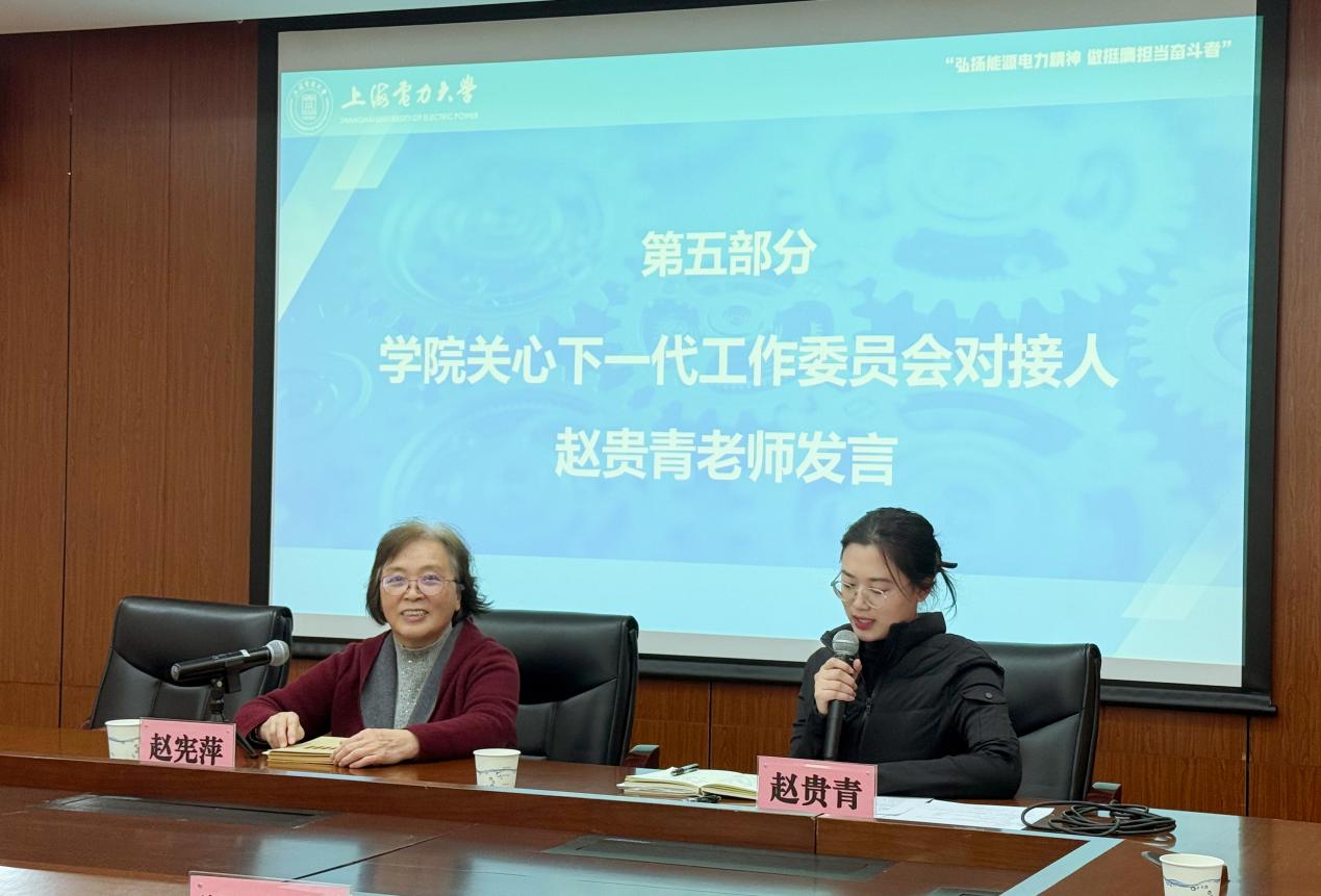 学院关工委对接人赵贵青老师在发言中感谢赵教授的分享,指出跨学科思维与较真精神的普适价值,表示学院将持续搭建老中青交流平台,希望同学们传承精神、勇担使命。