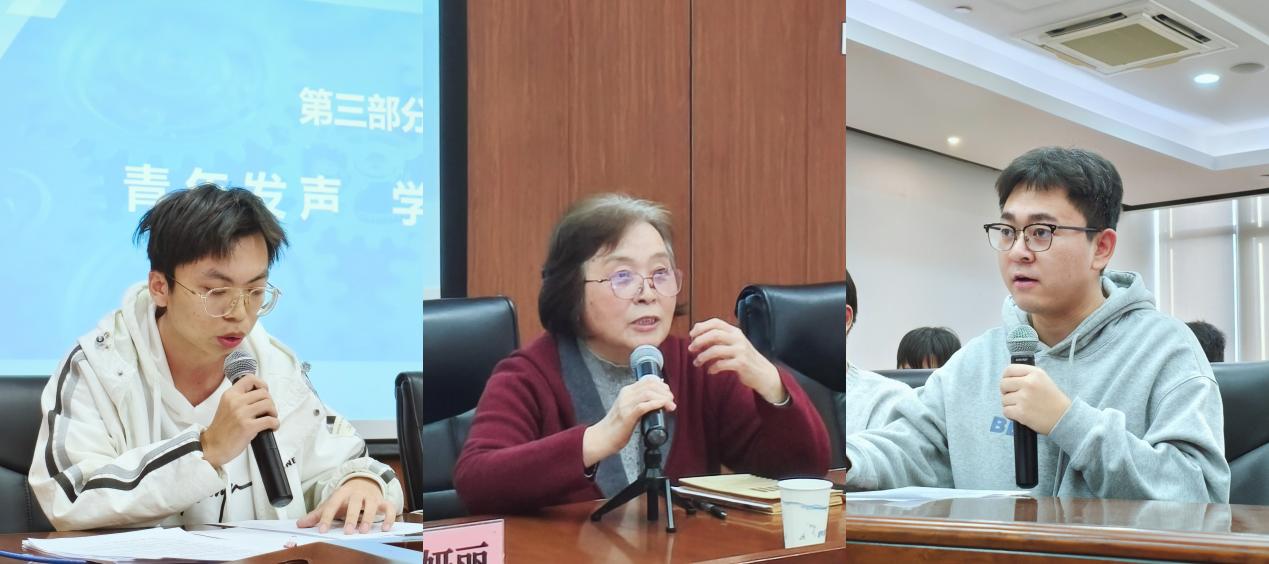 “青年发声”环节,研究生代表杨洛、付之豪结合科研实践分享感悟,均表示将以前辈为榜样,把个人研究与国家需求紧密结合。