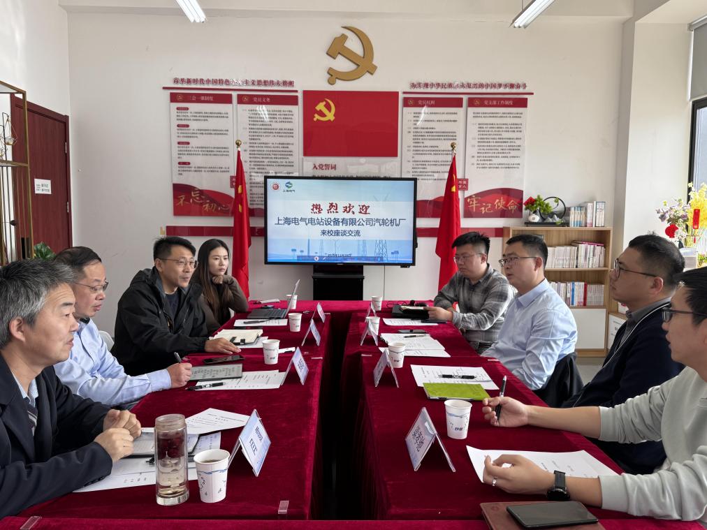 为精准对接能源行业发展需求,推动能源领域产学研深度融合,11月28日上午,tyc8722太阳集团与上海电气电站设备有限公司汽轮机厂在临港校区能机楼A322会议室举行座谈交流会。上海电气汽轮机厂工业透平部副总经理王贺、人力资源部副部长刘昭、设计处成套技术室主任梁孝驰及主任设计师孙晓文等企业代表,tyc8722太阳集团党委书记朱群志、新能源工程系副主任张敬奎、储能科学与工程专业教研室主任闫霆、就业工作联系人高汕出席会议。