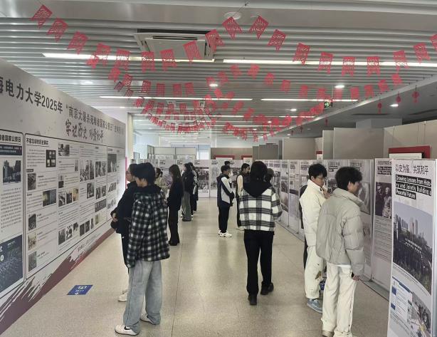 历史无言,精神不朽。12月8日至13日,临港校区图文楼二楼展厅内,“铭国殇・图说历史”南京大屠杀史料图片展肃穆开展。由侵华日军南京大屠杀遇难同胞纪念馆提供的29块展板依次排开,百余张珍贵史料图片串联起苦难历程——从山河破碎的悲惨场景,到国际友人的正义声援,再到民族觉醒的抗争之路,详实的文字注解与震撼的影像资料,让每一位驻足师生直面民族创伤,深刻读懂“落后就要挨打”的沉重教训。