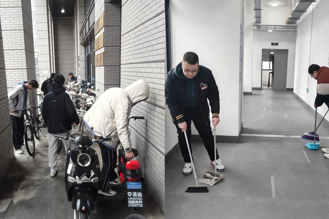 下午,由志愿者组成的志愿服务队化身“校园啄木鸟”,开展校园环境清洁专项行动。志愿者们分工明确、干劲十足,对学院楼公共区域进行全面清扫整理,同时规范整理乱停乱放的非机动车辆。经过齐心协力整治,校园环境焕然一新,青年学子以实干美化校园环境,彰显了新时代大学生的责任与担当。