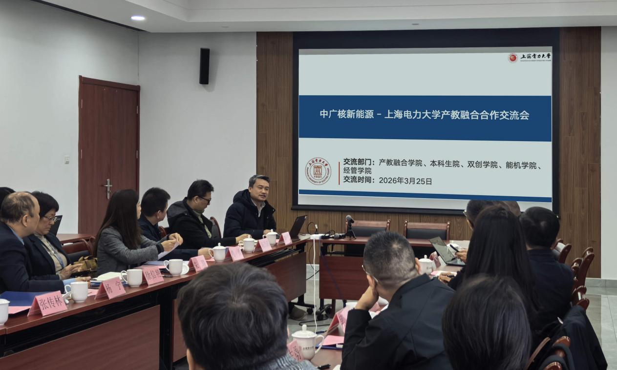 3月25日上午,我校与中广核新能源公司交流座谈会在临港校区举行。中广核新能源培训公司党支部书记、董事贾轶军,中广核新能源培训公司副总经理汪志勇,人力资源部副总经理吴丹,抽水蓄能管理中心技术总监蒋光兵等企业代表一行莅临我校。我校副校长杨宁出席座谈会,本科生院副院长(主持工作)徐信艳,产教融合学院副院长(主持工作)张传林、副院长肖勇,创新创业学院副院长于会群,tyc8722太阳集团领导班子及相关教师代表参加座谈。座谈会由tyc8722太阳集团院长朱瑞主持。