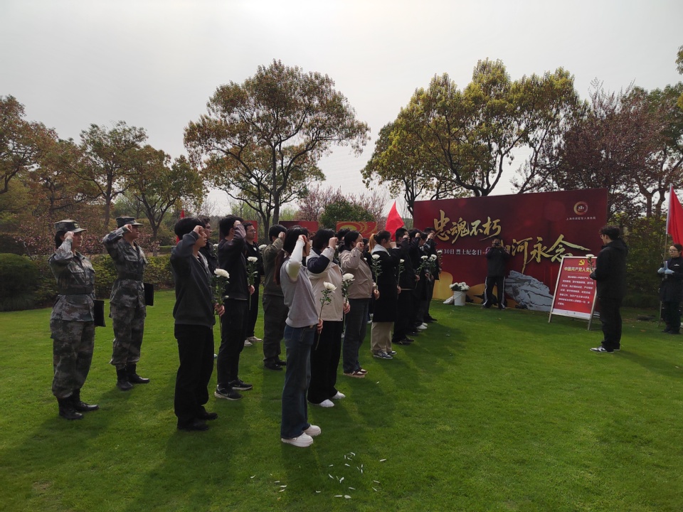 活动现场庄严肃穆,松柏苍翠,寄托着对英烈的无限哀思。在书院烈士纪念碑、“两弹人”纪念园及南汇革命纪念园前,全体成员整齐列队,怀着崇敬之心,向革命先烈敬献鲜花,鞠躬致哀,默哀致敬,以此表达对英烈的深切缅怀和崇高敬意。