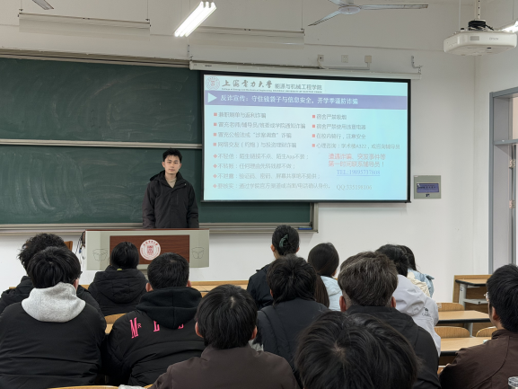 会上,张华副所长结合近期高校真实反诈案例,重点讲解网络刷单、APP诈骗、网络交友、冒充师生等高发诈骗类型,用通俗易懂的语言讲解诈骗陷阱的识别方法和应对技巧,提醒学生警惕个人信息泄露、陌生链接和转账风险,遇可疑情况及时向老师、家长或公安机关求助。现场氛围热烈,有效加深了学生对反诈知识的理解,切实提升了学生的反诈防范意识和应急处置能力,进一步丰富了学院反诈宣传教育的形式与内涵。