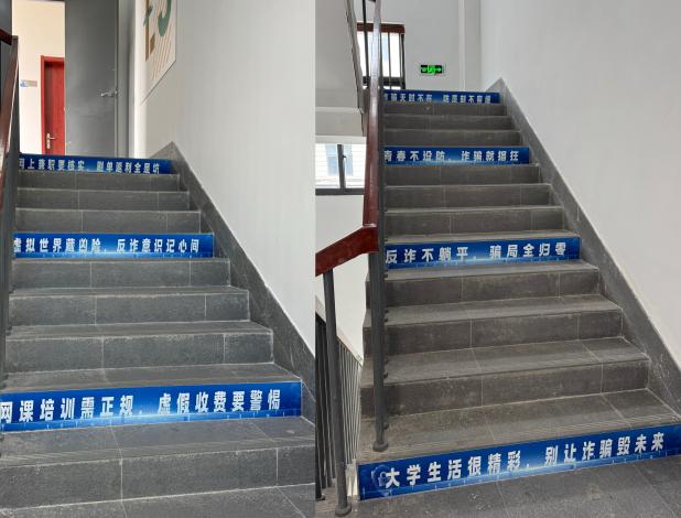 同时,学院强化反诈宣传氛围营造,在教学楼、宿舍楼等学生常去公共区域,采用海报、漫画等青年学生喜闻乐见的形式布置反诈宣传内容,让反诈知识融入日常生活,潜移默化浸润学生心中,推动反诈宣传入脑入心、落地生根。