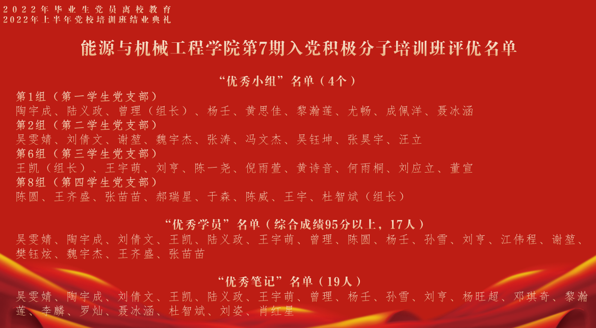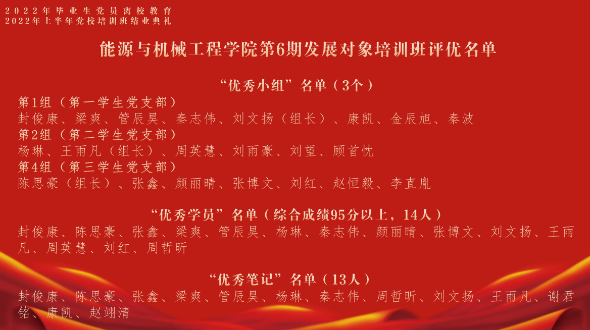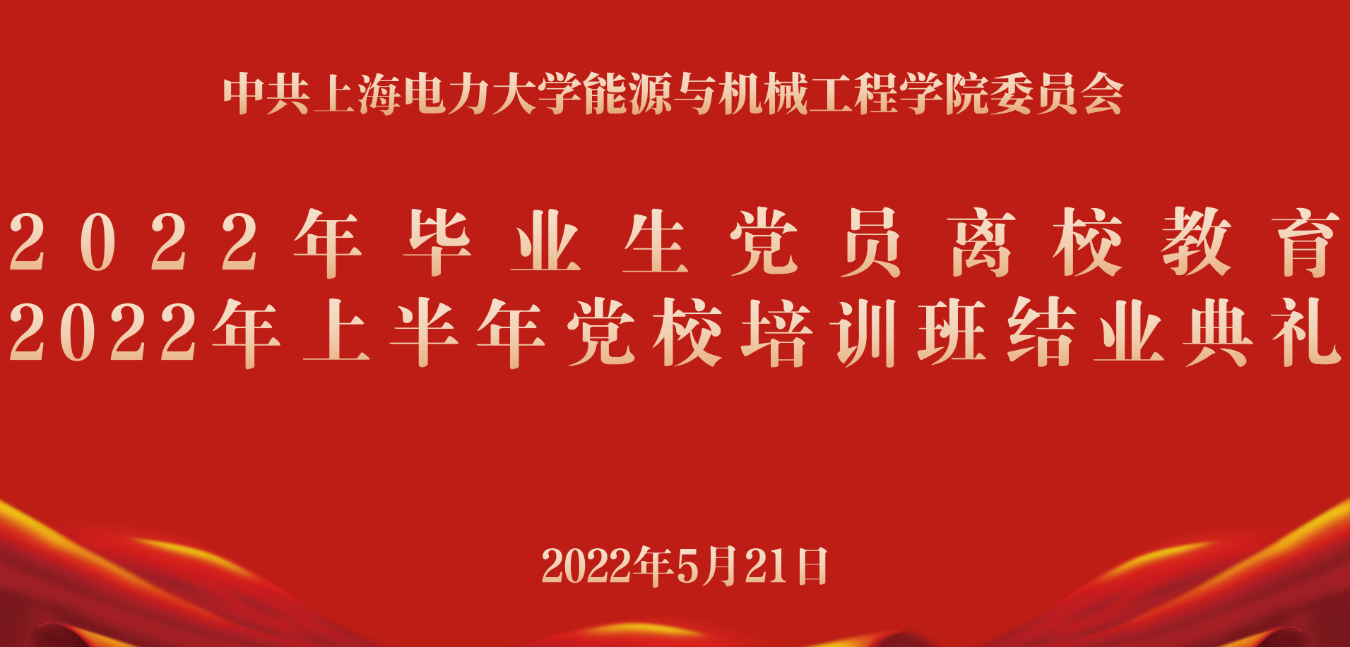 2022年5月21日,能机学院召开了2022届毕业生党员离校教以及2022年上半年党校培训班结业典礼。能机学院党委书记潘卫国、党委副书记周婷、2022届全体毕业生党员及党校培训班学员参加了本次会议。会议由学院专职组织员王喆主持。
