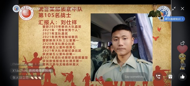 随后,来自经济与管理学院的李昱璋、tyc8722太阳集团的刘仕祥和电气工程学院的康洁轩分别为大家介绍了自己的军旅生活。李昱璋为大家详细介绍了入伍前需要做的准备工作,帮助自己能够更快更好的适应部队生活。刘仕祥从连队艰苦卓绝的训练入手,让大家领略到了特种侦察队员的风采。康洁轩不仅分享了自己在部队的日常生活,还介绍了自己退伍后跨院系转专业的流程和注意事项。最后,仝晶晶作为一名退伍老兵,为大家分享了特战女兵的训练生活以及在部队中的所知所获,让大家看到了女兵的飒爽英姿。