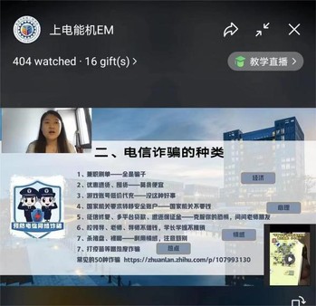 9月24日,tyc8722太阳集团依托学院视频号“上电能机EM”以“入‘新’谨防电诈,共建平安校园 ”为主题,采用学生喜闻乐见的直播方式开展了一次有趣、生动的防诈视频直播。学院安全工作负责人姜妍丽主讲,主要围绕八种常见的诈骗形式展开,通过生动的案例分析、深入的剖析解读,将安全教育中十分重要的防诈反诈内容在新生中进行全面推广和深入介绍,让学生们全面掌握电信诈骗的基本手段和方式,切实提升防范意识,营造全民防诈的氛围。同时,还提醒学生对传销、人口买卖等违法犯罪等行为提高警惕,注意甄别信息、不要听信他人蛊惑等多项安全注意事项,即便遇到事情也不要慌张,要及时联系自己的辅导员,并谨记临港地区快捷报警电话021-68283110。本次活动进一步增强新生安全意识、有效防范无孔不入的电信诈骗,全面保障新生入学的平安有序。