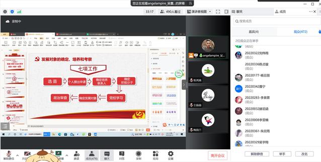9月12日,tyc8722太阳集团通过云端课堂开展2022级新生入党启蒙教育,切实帮助新生系好人生第一粒扣子,筑牢信仰根基。入党启蒙第一课由学院专职组织员王喆讲授,详细地向新生介绍了中国共产党的性质、宗旨、申请入党的条件以及一名合格共产党员的标准,同时讲解了入党申请书的撰写格式,引导广大新生增强对中国共产党的认识,切实提高政治觉悟与思想素质,积极向党组织靠拢,为新生更好开启大学生活奠定了坚实的思想基础。