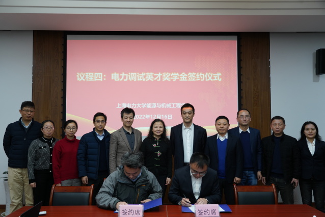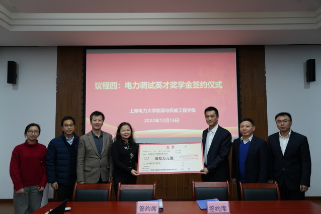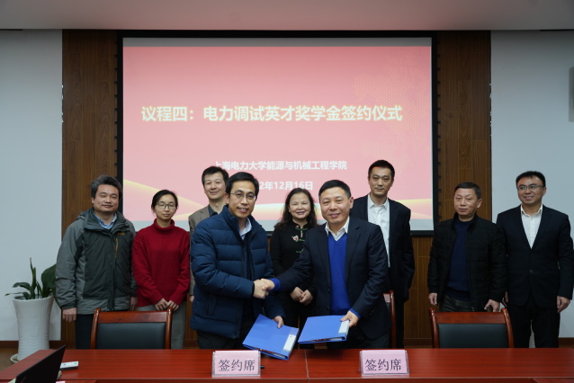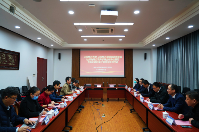 12月16日,我校与上海电力建设启动调整试验所有限公司产学研合作协议签订暨电力调试英才奖学金捐赠仪式在临港校区学术楼105会议室举行。上海电力建设启动调整试验所有限公司董事长兼总经理叶祺贤、副总经理茆顺涵、副总经理陆杰、办公室主任庄艳、市场经营部主任张丰和调研员张玮与会;我校总会计师张川、校长办公室主任、基金会理事长李兆鹏和能机学院党政班子及教师代表参加会议。会议由能机学院党委书记潘卫国主持。