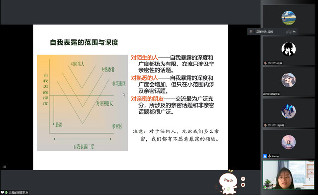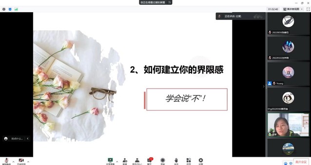 为有效引导新生优化个性心理品质、提高心理调适能力,构建良好可持续的人际交往关系,尽快完成大学生活的调整和适应,12月16日13:30,tyc8722太阳集团组织全院新生齐聚云端,开展了一场主题为“大学生的人际沟通”的专题讲座,讲座由校心理健康教育中心专职心理教师过爱主讲。