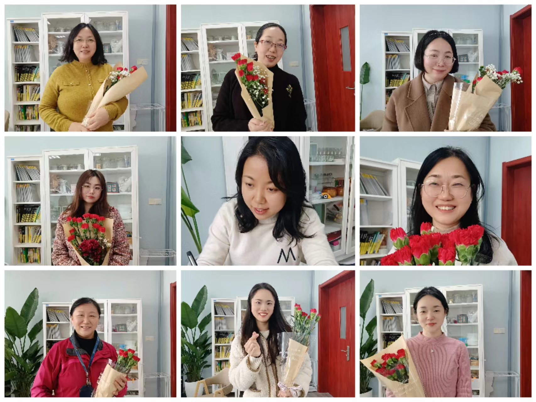 女教职工们用自己灵巧的双手,尽情发挥创造力,修剪枝叶、搭配色彩,忙得不亦乐乎,在自我创作、欣赏中尽显慧智兰心。在大家的巧手下,玫瑰花、洋牡丹、康乃馨、太阳花等各种花和绿叶搭配组合在一起,变成了一束束令人赏心悦目的艺术品,有的诗情画意,有的高雅格调,有的清新怡人。老师们将精致、新意融入了每一个细节中,她们笑靥如花,芳华自在,纷纷为彼此送去深深的祝福。