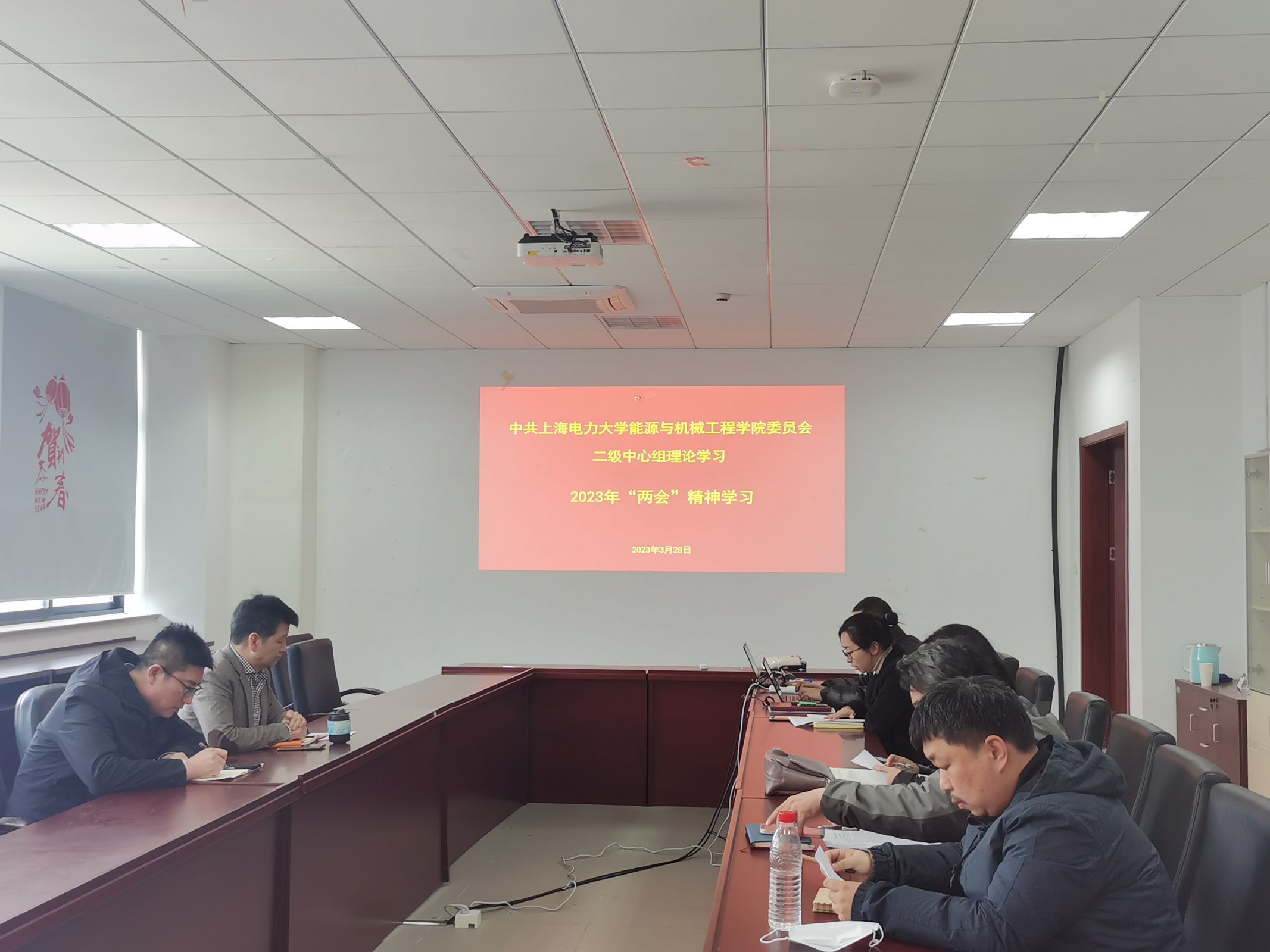 能机学院于2023年3月28日下午在能机大楼A303会议室召开了二级中心组理论学习会议,专题学习2023年“两会”精神。校党建服务中心/党建督查室周维刚老师列席会议,会议由能机学院党委书记潘卫国同志主持。
