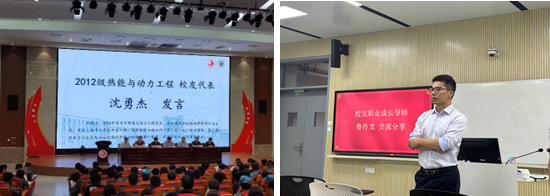 为增进学生对电力企业的宏观把握和认知,廓清学生求职选择和成长发展的迷茫,引导学生积极投身祖国的电力行业,让火热的青春在能源行业发展中焕发绚丽色彩,我院特邀来自华能上海石洞口二厂运行部副值长、2016届热能与动力工程专业校友沈勇杰,浙能电力人力资源部、我校2010届热能与动力工程毕业生鲁传龙,以2023级新生校友职业成长导师的身份,为能机新生讲授“开学第一课”。两位校友从自身成长经历出发,以“我到底在追求什么”为题,引出人生选择、职业规划主题。沈勇杰表示,起点即是终点,终点亦是起点,精彩人生的每一步都是由无数个起点组成,也会留下一个个丰硕的里程碑,建议新生们从终局角度来做选择,拨开层层迷零,直达真实本心。鲁传龙则寄语新生尽早规划人生,积极培养自身思考问题和解决问题的能力,提升自身的综合能力。此外,其他10位校友职业成长导师以录制VCR的形式,在新生入学教育大会上纷纷送上祝福,勉励新生扬帆起航,逐梦上电。