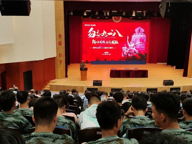 国无防不立,民无防不安。能机学院长期重视国防教育对于在校青年大学生的影响作用,积极开展各类型的爱国主义精神宣讲、军地协同讲座等系列活动,进一步强化大学生国防意识,取得了突出的成效。在2023级新生军训期间,正值“九一八事变”92周年,学院邀请了服役于空军某部的军训教官开展“勿忘国耻,吾辈自强”的爱国主义教育。让同学们通过对历史往事的了解,牢记新中国的来之不易,是无数革命先辈抛头颅洒热血才换来的,引导同学们时刻树立“居安思危”的国防意识,为国防建设奉献出自己的力量。