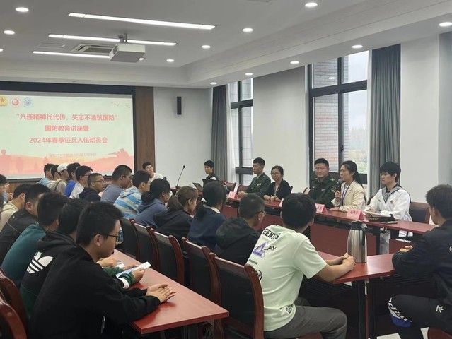 为进一步增强当代大学生国防意识、弘扬爱国主义精神,凝聚起强国兴军的磅礴力量,能机学院于10月13日在学术楼307会议室开展“国不能无军”国防教育讲座暨2024年春季征兵动员会。活动充分发挥军地合作优势,引入资源促进高校国防教育及征兵工作,中国人民解放军“南京路上好八连”所在营副教导员方梦晖少校受邀宣讲,能机械学院党委副书记周婷出席,学院征兵负责人仝晶晶主持。
