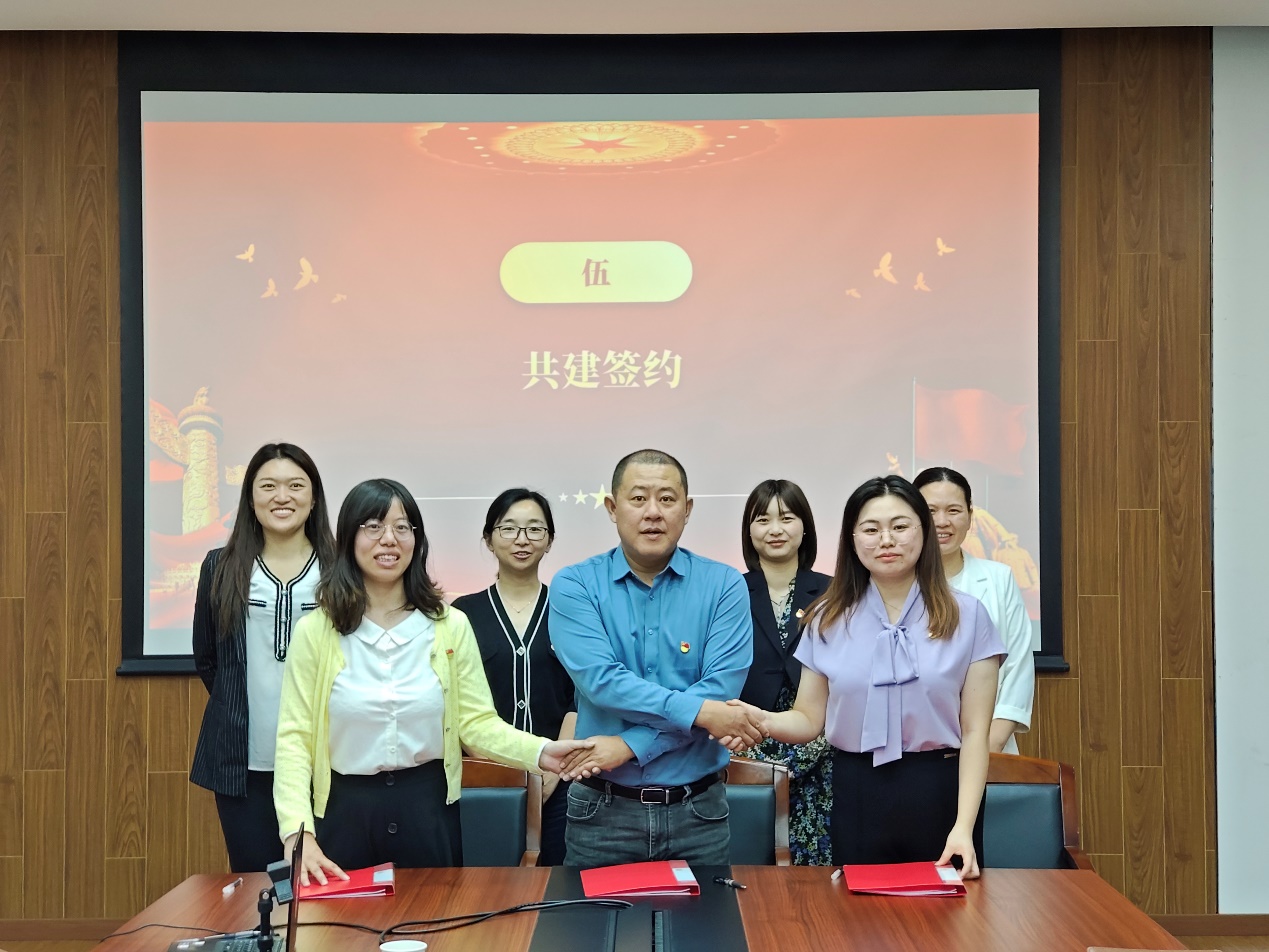 第二学生党支部书记杨丽媛、学院团委书记韩林岑、宜浩佳园二居民区党总支书记张卫三方共同签署了《党团共建协议书》。