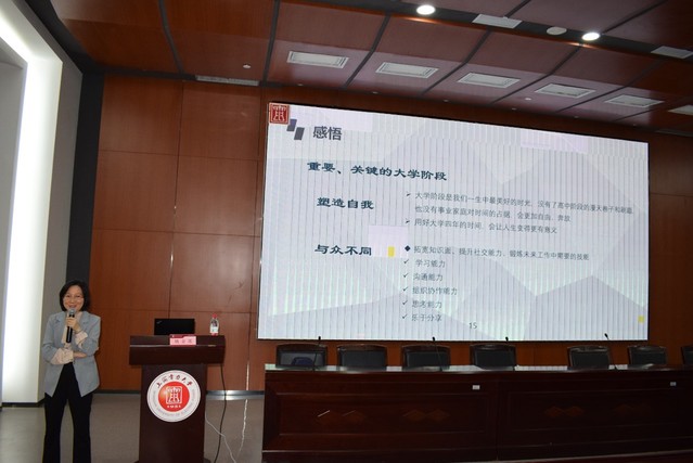 姚金莲结合高考结果给当时的自己带来的迷茫和困惑,引导同学们认真思考大学对于人生的意义和改变。在分享中,她谈到大学期间会遇到很多美好的第一次,会加入很多学生团体,体验不同的社会生活,有可以自主支配的时间,具有极高的可塑性。对于大学中收获的点滴,都是人生未来诸多的积累,鼓励同学们能够克服困难、勇敢尝试。