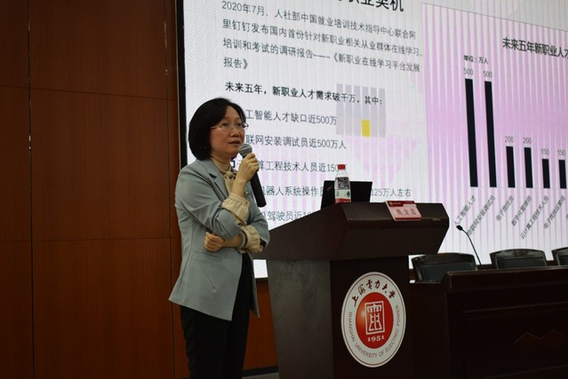 为助力2023级新生走好大学第一步,深入了解电力行业与人工智能领域的发展前景,树立人生新目标,10月31日,能机学院邀请了上海洛丁森工业自动化设备有限公司销售副总裁、青苗计划的联合创始人、1997级热能与动力工程专业校友姚金莲开展《电力行业与人工智能》专题讲座,学院党委副书记周婷、2023级新生参加讲座,会议由2023级新生辅导员仝晶晶主持。