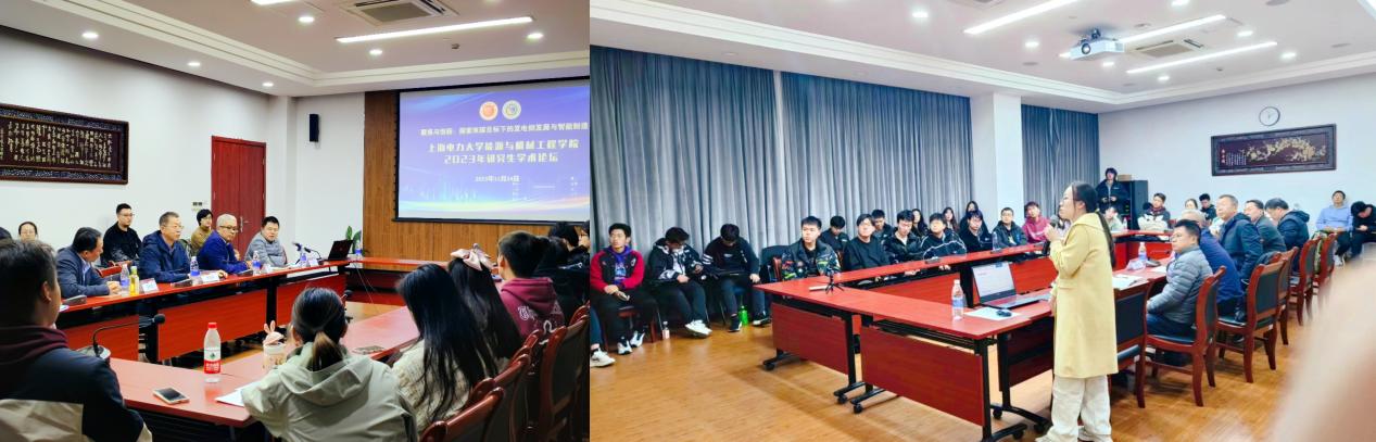 国网上海综合能源服务有限公司副总经理张春雁、上海能源建设工程设计研究有限公司党委书记、董事长孙永康、华能上海电力检修有限责任公司副总经理裴东升、上海电气环保工程设计研究院院长冯士刚等出席专家论坛,分别做了《面向新型电力系统建设的综合能源服务关键技术需求及展望》、《“双碳”目标下的韧性城市能源解决方案》、《“双碳”目标下绿色转型发展面临的机遇与挑战——推进发电企业分布式光伏高质量发展》和《新型电力系统背景下储能发展的思考与展望》的主题报告,并与师生进行了有效交流互动。