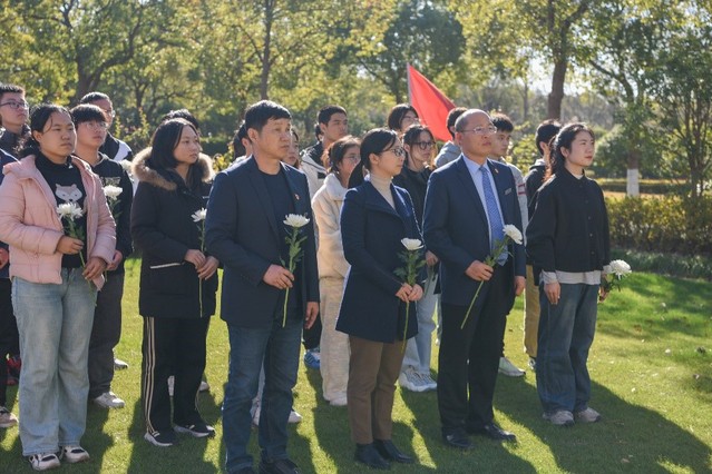 师生代表一同祭扫书院烈士纪念碑和浦东公安英烈墙,为革命烈士们及在和平年代奉献出生命的公安干警们敬献鲜花并进行鞠躬默哀。在陵园讲解员的带领下,参观了园内红色教育景点,进一步提升学生爱国情怀、培育文化素养,加强青年学生的文化自信。