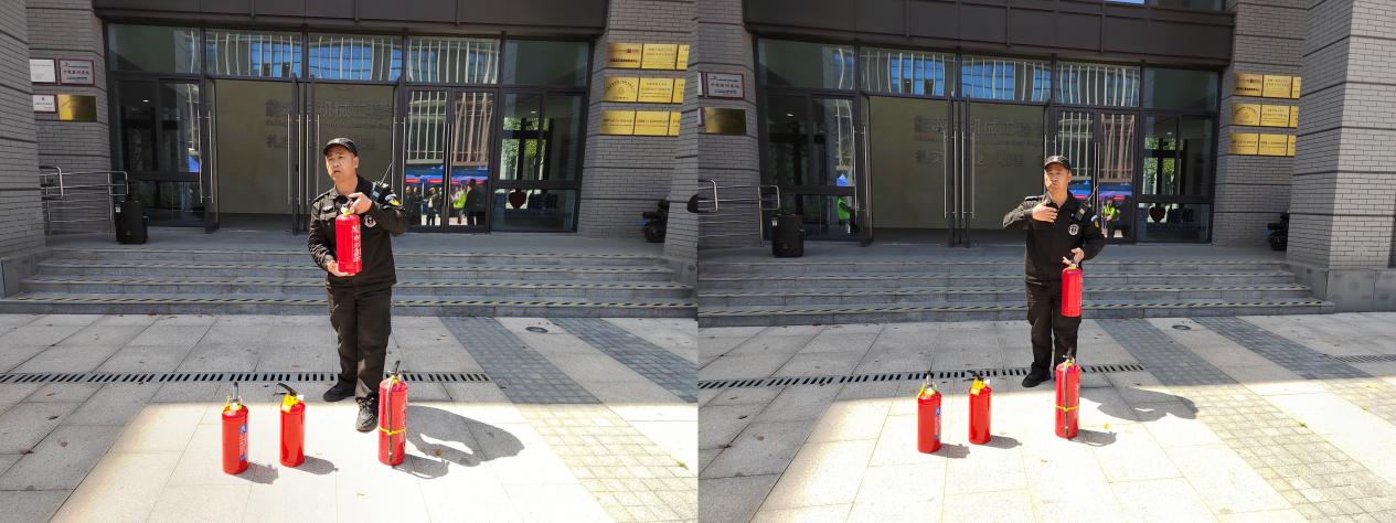 此外,保卫处工作人员还现场教授了灭火器的使用方法。在专业人士的指导下,师生们亲身实践,不仅掌握了灭火器的操作技能,也进一步增强了应急处理能力。