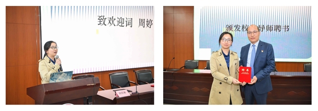 周婷对福寿园海港陵园积极发挥企业红色资源优势,前来我校开展生命教育和爱国主义教育工作表示感谢。通过本次讲座,不仅希望传递生命教育的重要性,更希望培养同学们尊重生命、关爱他人以及自我保护的观念。周婷就能机学院与海港陵园后续在校企共建、创新教学模式、拓展社会实践方面提出了殷切期盼和良好祝愿。同时,周婷向刘保林授予tyc8722太阳集团“校外导师”聘书,希望刘保林导师能够在同学们学习成长、择业辅导、生命教育和爱国教育等方面提供指导。