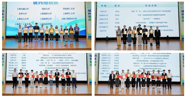 成功闯进决赛的96个项目分8个评审小组分别进行项目答辩,最终授予同济大学王胜文团队《效能“并”茂——热泵与全热交换器组合型户式新风除湿机》等6个项目特等奖,授予上海交通大学刘恒瑞团队《涅槃重生——碳烟基高附加值储能产品的制备与性能研究》等31个项目一等奖,授予上海大学张乐佳棋团队《“仪碳究净”——碳捕用封三位一体的电化学水处理装备》等56个项目二等奖,授予上海海洋大学滕博团队《绿航-双能环保清污船》等72个项目三等奖。上海交通大学、同济大学、太阳官网等11所高校获优秀组织奖。