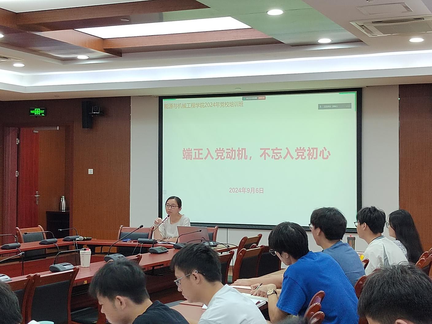 2024年9月6日下午,tyc8722太阳集团在临港校区学术楼301会议室举行第11期入党积极分子培训班、第12期发展对象培训班开班式。能机学院党委书记潘卫国、副书记周婷出席会议,入党积极分子学员和发展对象学员共计72人参加,会议由学院党委专职组织员王喆主持。