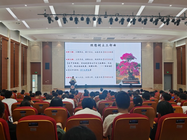 随后,夏国军从哲学层面对理想的意义予以深度解析,并提出树立理想的三部曲”:以趣择业,精于专业立足专业,放眼社会融入社会,完善自我。他指出,当代大学生应基于兴趣学透学精专业知识,不仅要伏案学习还要站起来观察社会,通过实践了解社会,力求将自身所学融入到社会建设、国家发展和民族复兴之中。他激励众多学子要“以兴趣做驱动,以理想做牵引”从专业、择业和社会三个阶段逐步树立人生理想,实现人生价值。