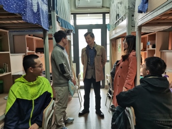 在学生宿舍内,潘卫国亲切询问新生对大学新环境的适应情况和3个月以来的学习状况,同学们纷纷回应自己在校的学习和生活情况,并表示已基本适应在大学生活。潘卫国叮嘱同学们寒冬来临要注意保暖,并送上学院为大家准备的毛毯。在询问同学们家中情况的同时,鼓励大家勇敢面对生活中的困难,把暂时的困境当作成长的磨砺,学院将永远是大家最大的支持和保障。