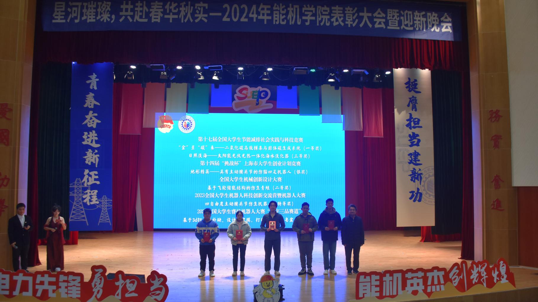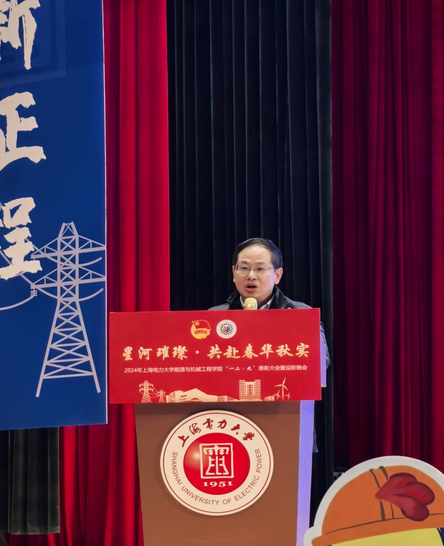 2024年12月13日下午13:30,tyc8722太阳集团“星河璀璨,共赴春华秋实”一二·九表彰大会暨迎新晚会在太阳官网临港校区大学生活动中心演艺厅隆重举行。能机学院院长朱群志、党委副书记周婷、副院长仇中柱、副院长陈乃超、团委书记韩林岑、全体辅导员以及学生代表出席。