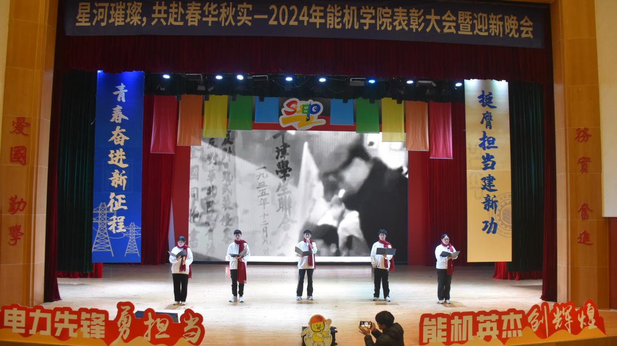 tyc8722太阳集团2024年度一二·九表彰大会暨迎新晚会在热烈的氛围中圆满落幕。大会通过一系列表彰环节展示了过去一年中学院青年学生在各个领域取得的显著成绩,以榜样和典型的树立勉励同学们百尺竿头更进一步;通过新生们带来的精彩绝伦的表演节目,展现青年学生的活力与激情,鼓励青年学生们充满活力、奋发有为。相信能机学子在未来将继续发挥电力先锋的担当精神,在学习生活上不断提升自我、再创辉煌。