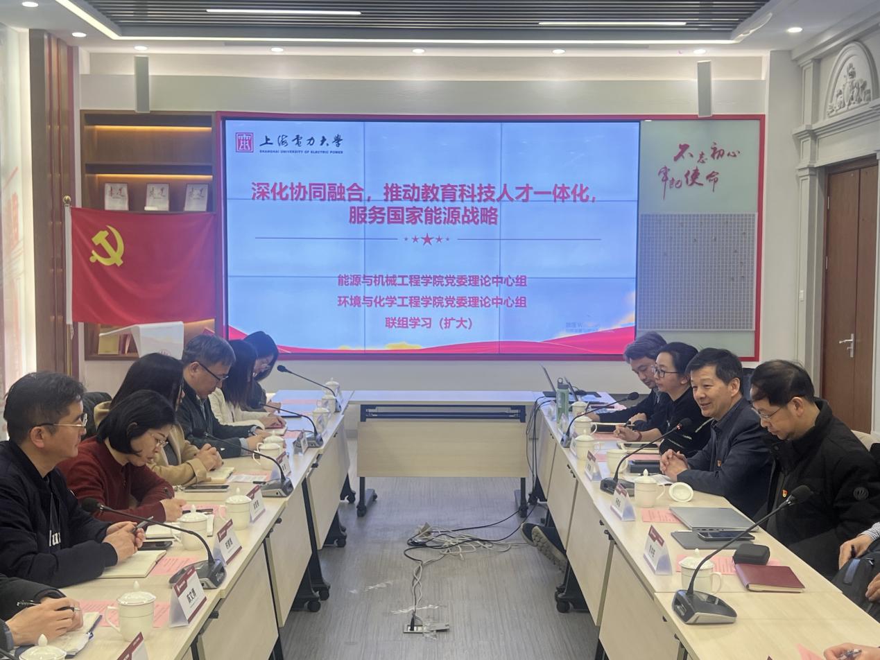 2025年3月10日,能机学院与环化学院在临港校区学术楼102党建服务中心举办了主题为“深化协同融合,推动教育科技人才一体化,服务国家能源战略”的二级中心组联组学习。能机学院党委委员、环化学院党委委员、两学院教师代表出席,党建服务中心/党建督察室党建督察员周维刚列席会议,能机学院党委书记潘卫国主持会议。
